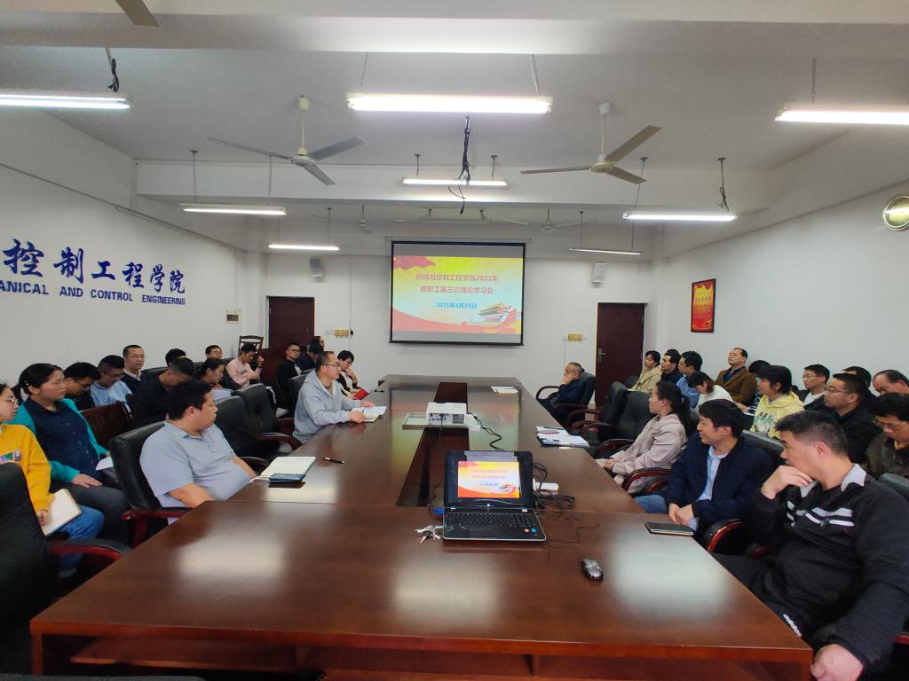 4月25日下午,学院在07215会议室组织开展了2021年第三次教职工理论学习。理论学习会由党委书记耿俊茂主持,全体教职工参加。