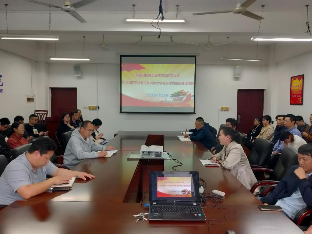 4月25日下午,学院党委书记耿俊茂在07215会议室主持召开教职工大会,传达学习习近平总书记在清华大学考察时的重要讲话精神。