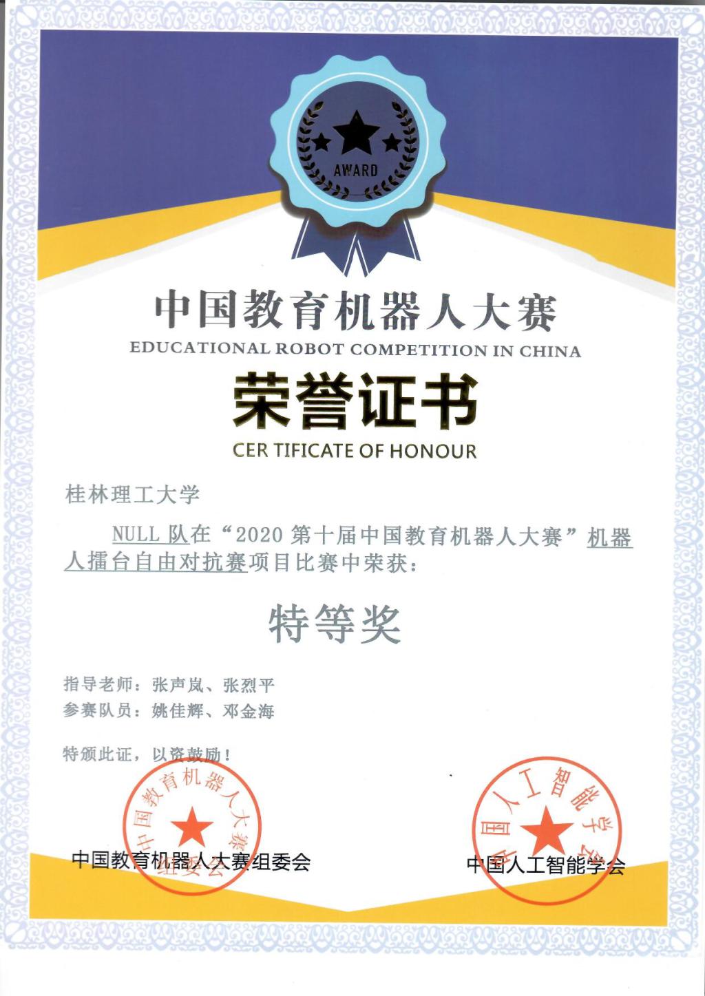 12月5日至6日,第十届中国教育机器人大赛总决赛在东莞松山湖光大We谷隆重举办。本次大赛由中国科协领导的一级学会中国人工智能学会主办,中国人工智能学会智能机器人专业委员会、全童科教(东莞)有限公司、松山湖国际机器人研究院承办。由于疫情防控的需要,今年的中国教育机器人大赛探索新模式,首次采用线上+线下相结合的比赛方式进行,共吸引了200多支队伍700多名选手参赛。我校共组建了14支队伍分别参加了大学本科组的智能搬运、机器人(高铁)游中国、机器人灭火和救援、机器人擂台对抗、小型家庭服务机器人、智能物流系统等六个项目的比赛,获得特等奖1项、一等奖2项、二等奖3项的好成绩。