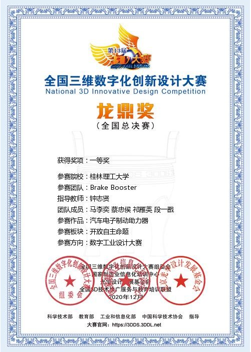2020年12月,由科学技术部、教育部、工业和信息化部、中国科学技术协会指导,国家制造业信息化培训中心、光华设计发展基金会等单位共同主办的第十三届全国三维数字化创新设计大赛(简称“全国3D大赛”)年度总决赛顺利举行。我校以机械与控制工程学院师生为主的代表队参加了该项赛事。经过师生共同努力,本次大赛我校共获省部级以上奖项78项,其中荣获国家级一等奖1项,三等奖4项,省部级奖项76项。