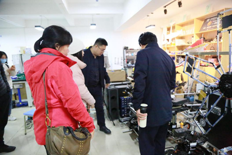 会后,在张声岚老师、周卢婧老师的陪同下,黄刚教授和乔俊福教授率领的教师团队参观了学院的机器人创新实践基地。作为RoboMaster机甲大师赛的参赛战队指导老师,乔俊福教授与黄冈教授与基地战队成员进行了有关比赛方面的交流。乔俊福教授在参观过程中对工程机器人以及步兵机器人的制作提出了自己的改进建议。黄刚教授首先指出基地训练场地过小的问题,后以太原工业学院火线战队举例,对如何正确的进行资源争取给出了建议,并在如何提高战队实力方面给出了多进行对抗训练,多与周边学校进行交流学习的建议。本次交流增强了基地与太原工业学院之间的学习和交流,为两校战队的进一步合作打下了良好的基础,对基地与外校战队的交流起到了促进作用。
