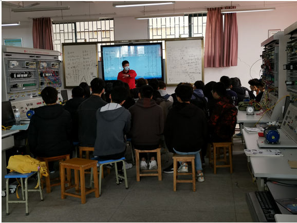 此次示范课,由周轶旻老师为大家做示范教学,周老师按实验教学计划,以《电器控制与PLC技术》中的低压电器控制部分的四个实验为教学内容,结合课件、图片、当堂讲述、实际操作演示等多种形式将其呈现。实验教学内容展示讲解完成后,周老师认真指导同学们实际动手完成实验操作。教学内容理论联系实际,课堂氛围轻松,老师与学生有着紧密的互动,教学思路严谨,讲解重点突出,课堂教学节奏感强,学生实际操作动手实验热情高涨。