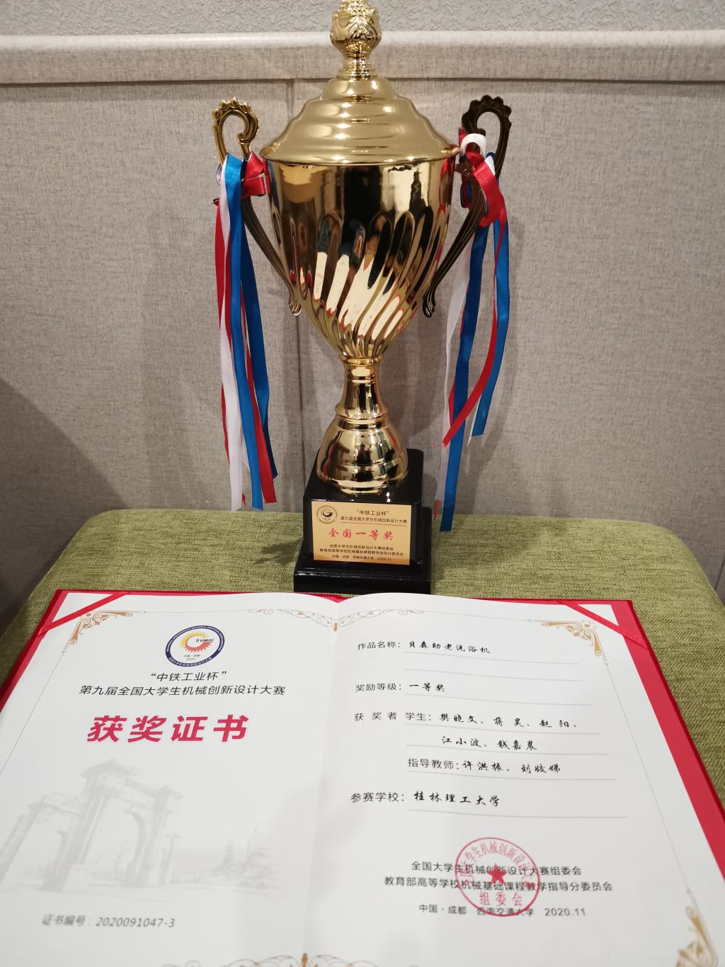 11月20日至22日,第九届全国大学生机械创新设计大赛决赛在西南交通大学举行。本次大赛以“智慧家居、幸福家庭” 为主题,由全国大学生机械创新设计大赛组委会和教育部高等学校机械学科教学指导分委会主办,来自全国30个省(直辖市、自治区)的678所高校共5090件作品经过各赛区选拔赛和全国决赛第一阶段评审,最终181件作品入围全国决赛。由我校学子樊晓文、赵阳、蒋昊、江小波、钱嘉晨、宋珺硕组成的参赛队在许洪振老师和刘姣娣老师指导下完成的参赛作品《贝森助老洗浴机》从广西赛区脱颖而出,入围了全国决赛,并获得全国一等奖,创学校历届参赛以来的最好成绩。