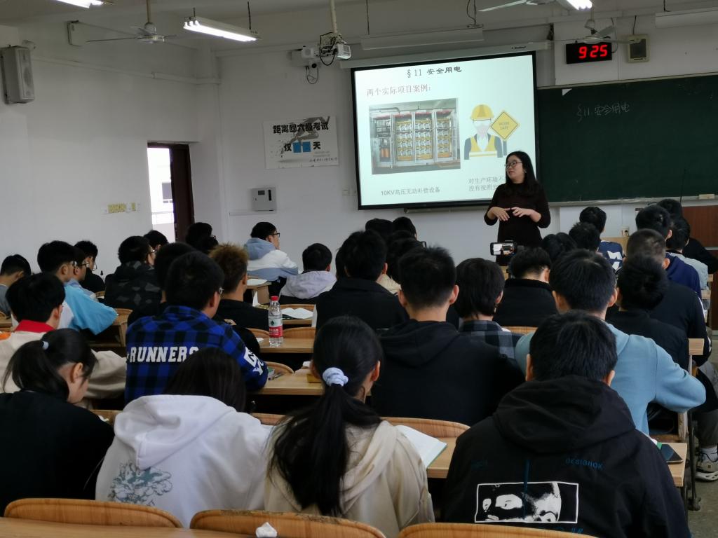 此次示范课,由于雁南老师为大家做示范教学,于老师选取了《电工电子学》中的“安全用电”为教学内容,在教学中运用思维导图对教学内容做出归纳拓展,清晰地展示授课内容,课程内容通过视频、图片、课件和板书等多种形式呈现,于老师还结合自己的科研项目及个人在实际工作积累的丰富经验和案例,给学生讲授了安全用电的重要性及安全用电方面应采取的措施,对同学们在课程实验及日常用电中容易忽略的环节给予警醒。教学内容理论联系实际,课堂氛围轻松,老师与学生有着紧密的互动,教学思路严谨,讲解重点突出,课堂教学节奏感强,展现了娴熟的教学技能。