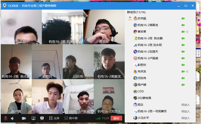 受新冠肺炎疫情毕业生不能返校复学的影响,2020日4月10日上午,机械电子专业教研室通过远程在线形式组织开展2020届毕业开题答辩会。本次开题答辩分为四个小组,13位指导老师到会指导,43名毕业生参加答辩,开题答辩率达到61%。在答辩会上,毕业生通过屏幕分享形式在群课堂里进行PPT演示陈述,由答辩小组老师对学生的开题情况进行针询评议,提出改进意见等,每个学生答辩结束后,老师给出答辩分数,填写答辩记录表。