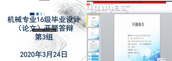 2020年3月24日下午,机械设计制造及其自动化专业开展了2020届毕业生开题答辩。因受疫情影响,学生目前不能返校做毕业设计,为了让学生能较为顺利进行和完成毕业设计,机械工程教研室决定采用腾讯会议平台,进行网络在线开题答辩。本次答辩共分5组,共有19位毕业设计指导老师和86位毕业生参加,开题率达到54%。