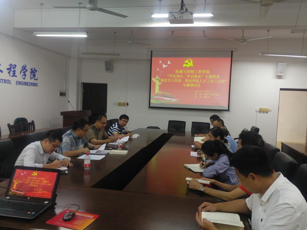 按照学院党委“不忘初心、牢记使命”主题教育工作安排,10月21日上午,学院在雁山校区07215会议室开展“不忘初心、牢记使命”第四次专题研讨,重点就“传承接力,建设发展新时代人才队伍”进行了专题研讨交流。学院党委书记耿俊茂主持会议,党政班子成员及主题教育领导小组办公室综合秘书组、宣传组、专项整治督导组组长等人员参会。