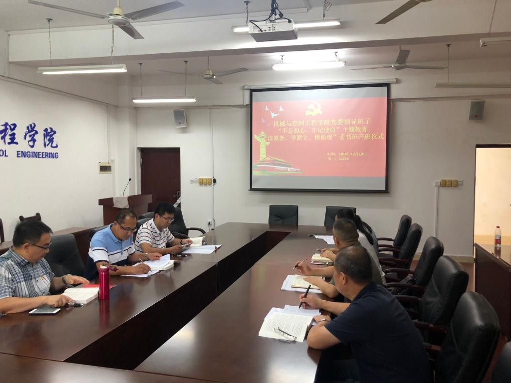 为贯彻落实党中央、自治区党委、学校党委的部署要求,抓好学院“不忘初心、牢记使命”主题教育,根据学院工作安排,10月10日下午,学院党委领导班子“不忘初心、牢记使命”主题教育“读原著、学原文、悟原理”读书班开班仪式在雁山校区07215会议室举行。开班仪式由学院党委副书记王迎波主持,学院党委领导班子成员参加开班仪式。