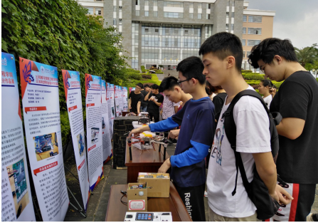 机械与控制工程学院2019届优秀毕业设计作品展于6月25-26日在雁山校区文德楼和明理楼之间广场展出。6月26日上午,学校党委副书记、纪委书记孙宁教授在学校纪委副书记、纪委办监察室主任华桂林的陪同下,到机械与控制工程学院检查指导本科毕业设计作品展。机械与控制工程学院相关领导以及部分师生一同到现场参观。学院相关负责人就优秀毕业设计作品布展、作品功能等情况向孙宁副书记作了详细汇报。孙宁副书记饶有兴致地参观了展览,对作品进行了点评并对布展形式、内容以及将作品展用于新生入学教育等提出了宝贵的建议。孙宁副书记对本次毕业设计作品、学院师生的努力给予了充分的肯定,希望后续对此次展出的作品进一步完善,突出作品特色,提高作品实用性,并参加相关学科专业竞赛。