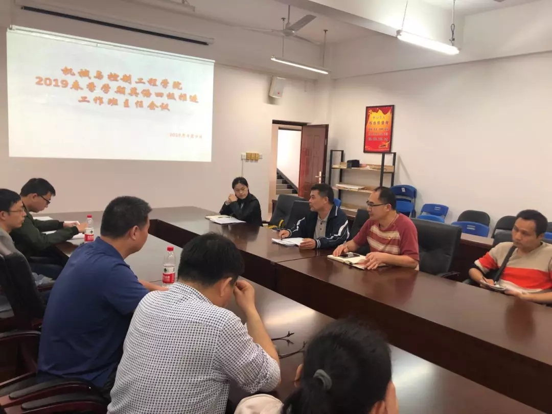 2019年4月9日下午,机械与控制工程学院2018春季学期英语四级工作推进班主任会议在07215会议室召开。参加此次会议的有机控学院党委书记麦范金、院长张烈平、党委副书记耿俊茂、副院长李海侠,学工办全体辅导员以及2017、2018级班主任出席会议,会议由党委副书记耿俊茂主持。