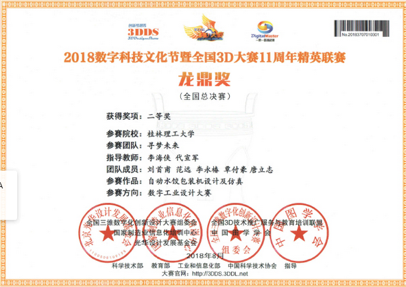 2018年全国3D数字化创新设计大赛是以“中国梦,龙鼎奖,新时代”为主题的赛事,是全国规模最大、规格最高、水平最强、影响最广的全国大型公益品牌赛事与“互联网+创新”行业盛会,被业界称为“创客嘉年华、3D奥林匹克、创新设计奥斯卡”。通过参加此次比赛将理论知识应用于具体的工程实践,提高了我校学生的三维设计能力和工程研发创新能力,为他们今后从事本专业的工作、更好地服务于社会奠定了一定的基础。