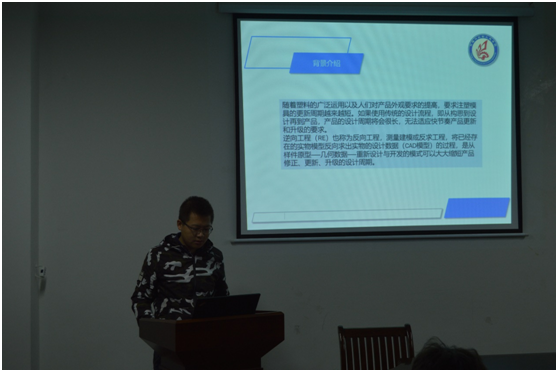 学术论坛上王军力同学作了题为“电吹风手柄后盖逆向工程建模与模具设计”的研究报告,分享了从逆向工程建模到模流分析再到模具设计的研究思路。张雪琴同学就“相控阵超声波无损检测原理和应用” 主题与师弟师妹们分享超声波检测技术领域的特点和应用情况。随后于滟淋、张寒、车轲同学分别作了与自己研究方向相关的学术报告,并与参会的研究生成员热烈的讨论,整个论坛气氛十分活跃。
