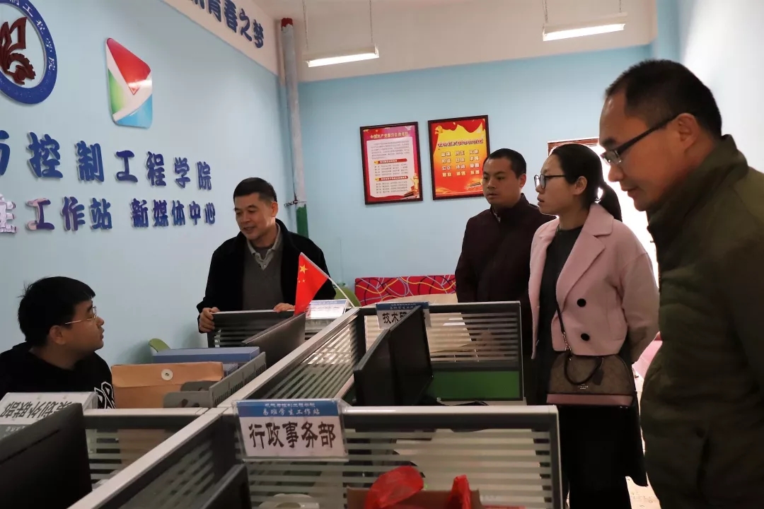 为深入学习贯彻十九大精神,增进我院意识形态凝聚力,切实做好我院安全稳定工作,加强校园安全防范意识,11月26日上午,我院党委书记麦范金、党委副书记耿俊茂、学工组长韩波、团委书记刘颖洁和学生党务中心指导老师于帅帅深入我院易班新媒体中心、学院宣传栏和学生宿舍检查我院落实意识形态安全情况。
