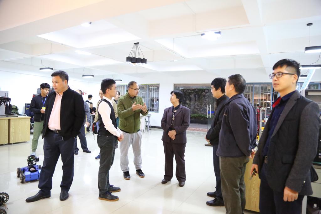 检查组一行参观了我院机器人创新实践基地,与基地学生团队进行亲切交流,现场观摩了学生科技作品成果展示,并就基地建设、项目研发、产品改进等方面进行了悉心指导。在检查指导过程中,检查组一行对基地取得的阶段性工作成绩表示肯定,同时指出:要进一步强化创新意识,加强大学生科技创新能力培养,不断提升大学生参与科技实践与创新的覆盖面,努力把大学生科技创新成果向生产产品转化,充分发挥机器人创新实践基地的育人功能。