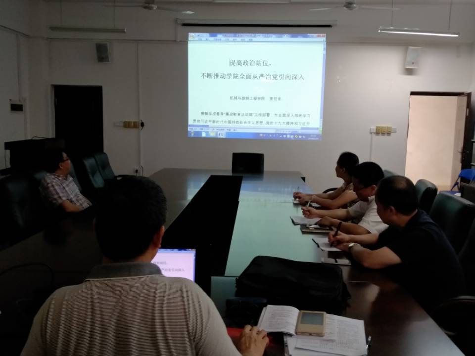 会上,麦书记首先组织学习了《中华人民共和国宪法》、《中国共产党党务公开条例(试行)》、《持续推进区管高校全面从严治党工作实施方案》,并解读了中华人民共和国宪法的地位和作用。之后,麦书记作了题为《提高政治站位,不断推动学院全面从严治党引向深入》的主题发言,他从“深刻认识新时代全面从严治党的重要性”、“准确把握全面从严治党内涵和要求”、“推动学院全面从严治党引向深入”三个方面对加强学院全面从严治党作了阐述。他强调,在今年的工作中,我们要紧紧抓牢党对各领域各方面工作领导这一根本性要求,以习近平新时代中国特色社会主义思想和党的十九大精神为指导,全面贯彻落实党的十九大精神、上级和学校关于全面从严治党的各项工作部署,不断增强管党治党的系统性、实效性,要从贯彻落实从严治党责任、加强廉洁思想教育和作风建设等方面为落脚点,不断推动学院全面从严治党引向深入。
