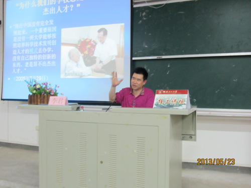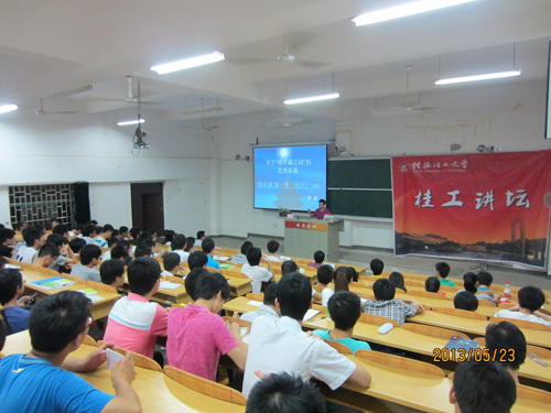 2013年5月23日晚,学院邀请艺术学院副院长李君副教授做客桂工讲坛,在雁山校区05307教室为机械与控制工程学院学子们带来了一场主题为“有感于‘钱学森之问’的艺术反思”的讲座。