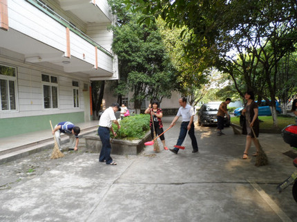 为积极响应学校《关于开展环境卫生大扫除暨教职工党员主题党日活动的通知》的精神,深入推进“美丽广西.清洁乡村.美丽校园” 活动的全面展开。2013年7月5日下午5点,在学院党委的号召下,我院组织领导干部、教工党员开展“打扫卫生,党员先行”主题党日活动。主要对本院卫生责任区域进行卫生大扫除。