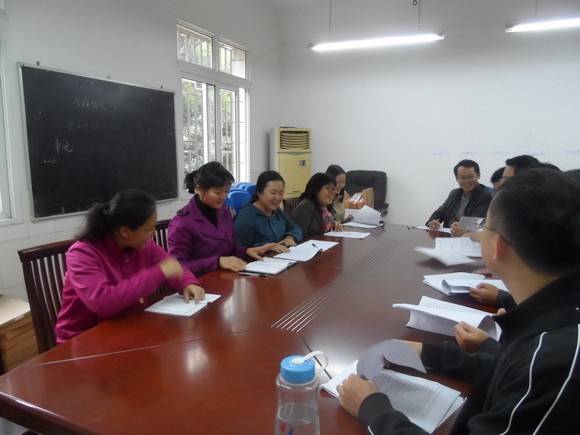 图为学院教师在学习交流评估访谈答案