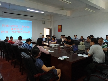 为不断增强党员领导干部和全体教师的拒腐防变的意识,不断促进党风廉政建设的健康发展,营造风清气正的校园廉洁文化氛围。5月16日下午,学院在雁山校区07215会议室召开全院教职工大会,组织开展2017年上半年廉政宣传教育活动。学院党政领导和全体教职工参加了会议。学院党委书记麦范金主持会议。