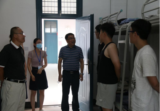 为了更好的了解2021级新生的入学报到及思想状况,9月12日上午,我院党委书记耿俊茂、院长张烈平、党委副书记王迎波以及副院长孙旋、李海侠、钟志贤等院领导在辅导员陪同下,走访了2021级新生宿舍,对新生表示慰问和关怀。