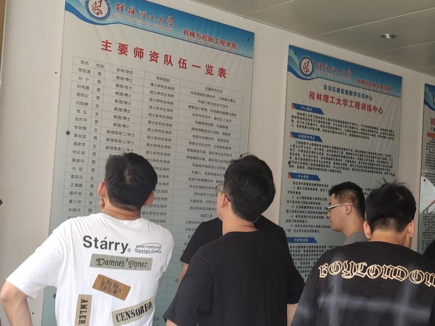 进入实验室参观之前,李先瑄和许洪振老师带领研究生新生浏览学院师资队伍一览表,并进行问题解答,通过该表新生对各个导师的研究方向有了一定的了解,这为他们之后选择自己感兴趣的研究方向的导师奠定了基础。
