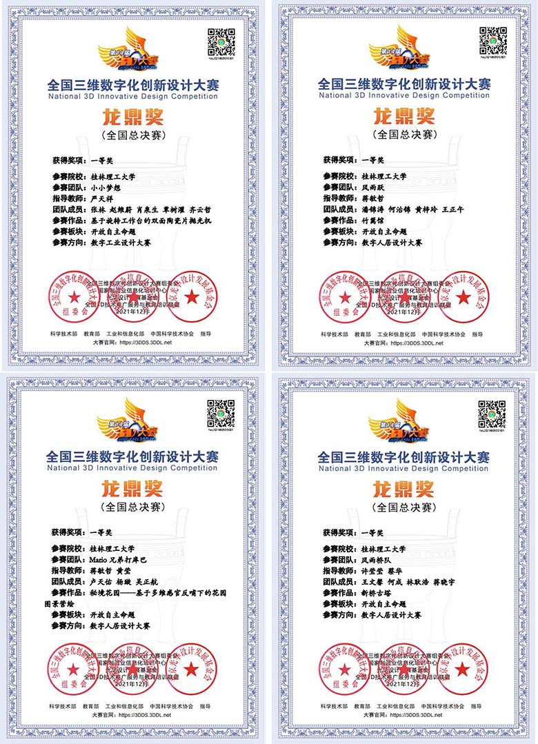 近日,第十四届全国三维数字化创新设计大赛全国总决赛落下帷幕,结合当前疫情防控形势,全国总决赛以线上线下相结合的方式进行。经过激烈的角逐,我校机械与控制工程学院严天祥老师指导的 《基于旋转工作台的双面陶瓷片抛光机》、旅游与风景园林学院黄莹和蒋敏哲老师指导的《竹篱馆》《秘境花园—基于多维感官反哺下的花园图景营绘》,土木与建筑工程学院许莹莹、蔡华老师指导的 《新桥古塔》等4件参赛作品均获得全国一等奖,其余3项作品获得全国三等奖。在本届赛事省赛阶段,我校队学子还获得了特等奖7项、一等奖11项、二等奖27项以及三等奖15项的佳绩。