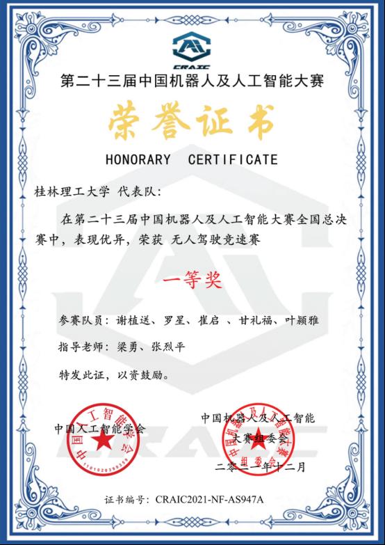 2021年12月11日,第二十三届中国机器人与人工智能大赛全国总决赛在重庆两江协同创新区采取线上线下两种方式举行。我校以机械与控制工程学院师生为主的代表队参加了该项赛事,经过激烈的角逐,谢植送、罗星、崔启、甘礼福、叶颖雅5名同学荣获全国总决赛无人驾驶竞速赛一等奖。我校学子还获得了全国总决赛二等奖2项,全国总决赛三等奖2项的佳绩。