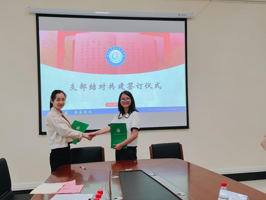 交流会上,全科医学院党委副书记潘涛就全科医学院的基本情况、党建工作情况、学生工作情况等做了介绍。随后,何金宝汇报了全科医学院青马班党支部的支部建设情况。接着,双方就各自的党支部建设情况、党建活动特色、业务工作情况进行深入交流,双方纷纷表示对此次支部结对共建充满了期待和信心。最后,双方的党支部书记依次签订《党支部结对共建协议书》。