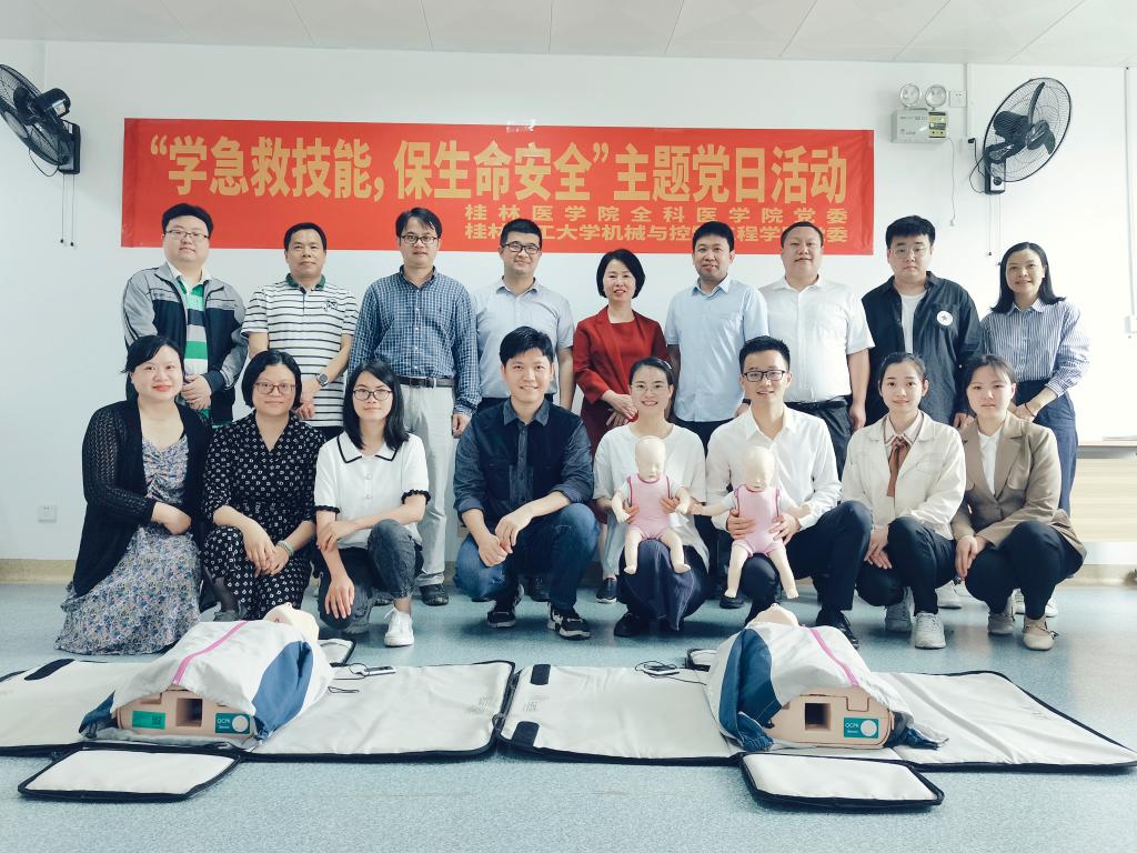 5月26日上午,机控学院学工办全体成员在学院党委副书记王迎波的带领下赴桂林医学院全科医学院开展学习交流,并与全科医学院党委及三个学生党支部互相签订结对共建协议,并开展了结对共建第一次“学急救技能,保生命安全”主题党日活动,全科医学院党委副书记潘涛及学院全体学工党支部书记参加交流会。