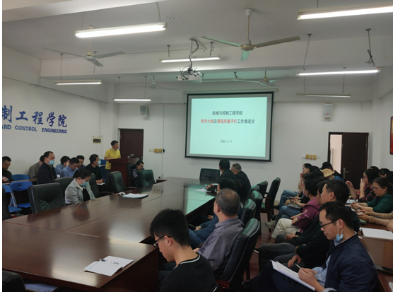 为进一步推进专业认证工作,根据学院部工作部署,2022年5月17日下午,学院院长助理、专业认证负责人代宣军老师在雁山校区学院07215会议室,对学院各专业的教学大纲修订和课程质量评价工作进行了安排,学院李海侠副院长及全体教师参加了会议。