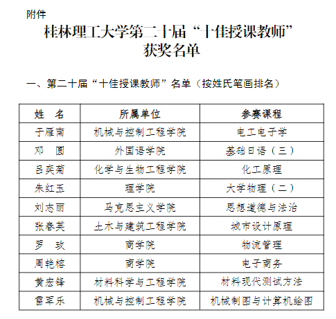 学院两名教师获学校第二十届“十佳授课教师”荣誉称号