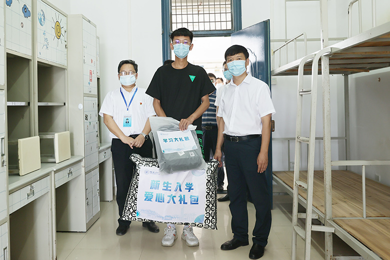 解庆林校长为我院新生伍俊杰同学送上新生入学大礼包