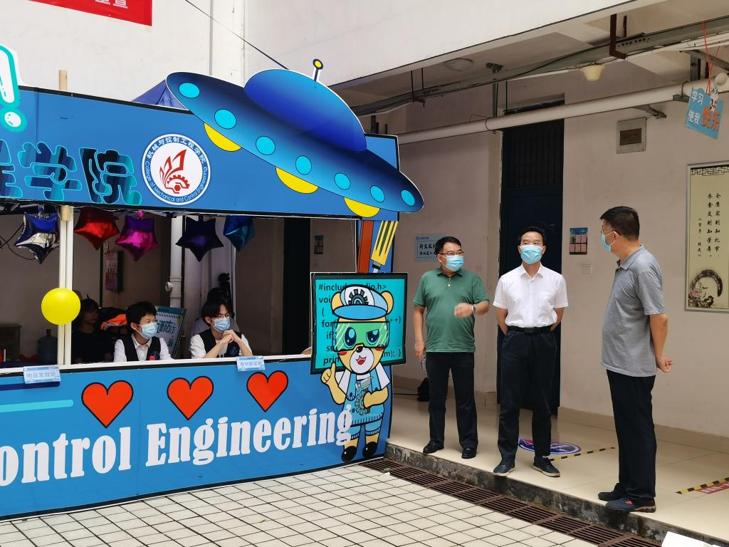 丹桂飘香秋风送爽,桂工喜迎八方学子。9月13日下午,学校党委常委、纪委书记韦学敏深入我院迎新报到现场指导工作,了解新生报到情况,前往宿舍看望来自全国各地的新生,并慰问迎新工作人员。学院党委书记李治、学院院长张烈平陪同。