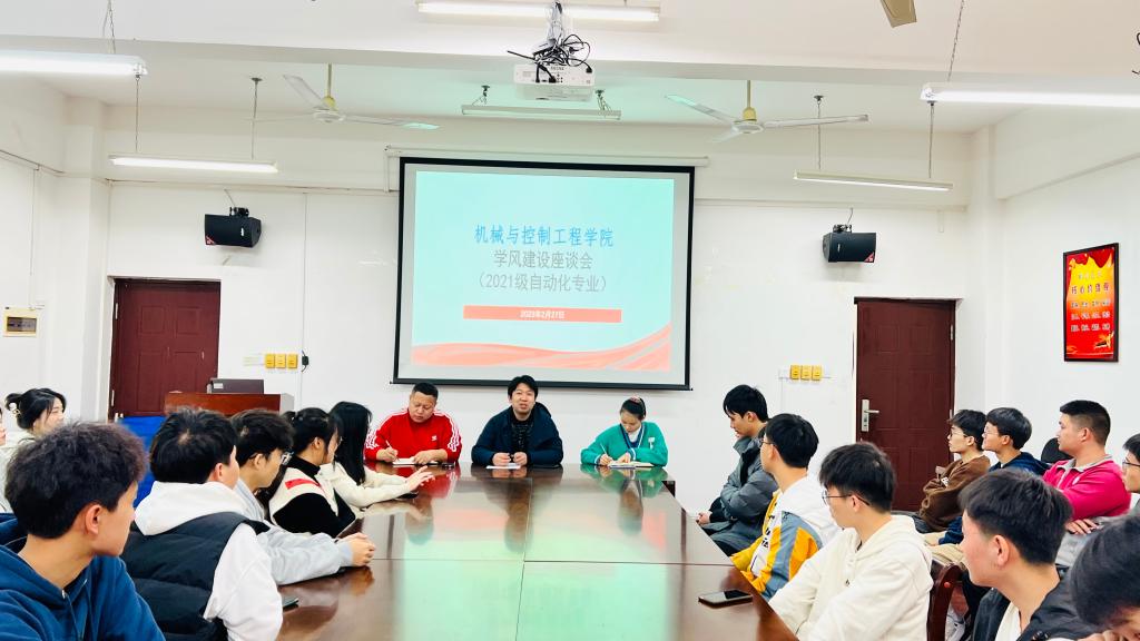 为营造良好的育人环境,激励学生奋发向上的学习精神,2月27日下午,机械与控制工程学院召开了2021级自动化专业学风建设座谈会。学院党委副书记王迎波、学工组长马文硕、2021级辅导员韦小巧和2021级各班级班委参加了此次座谈。
