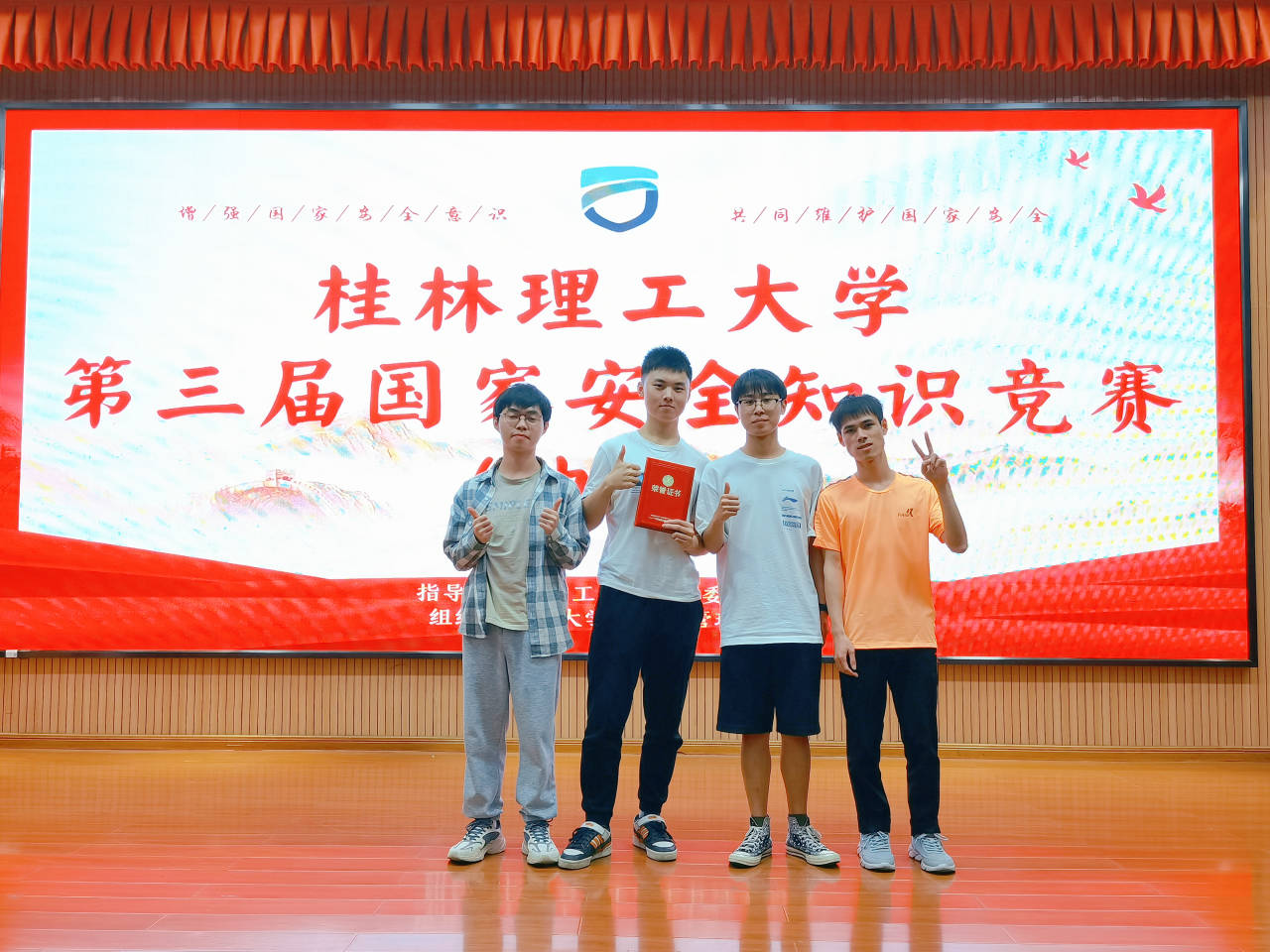 2023年4月15日下午,学校第三届国家安全知识竞赛在雁山校区图书馆报告厅圆满落幕,我院以2020级郑云、王昂和2021级霍祖鹏、郑易东组成的团队以总分第二名的好成绩荣获本次比赛二等奖。