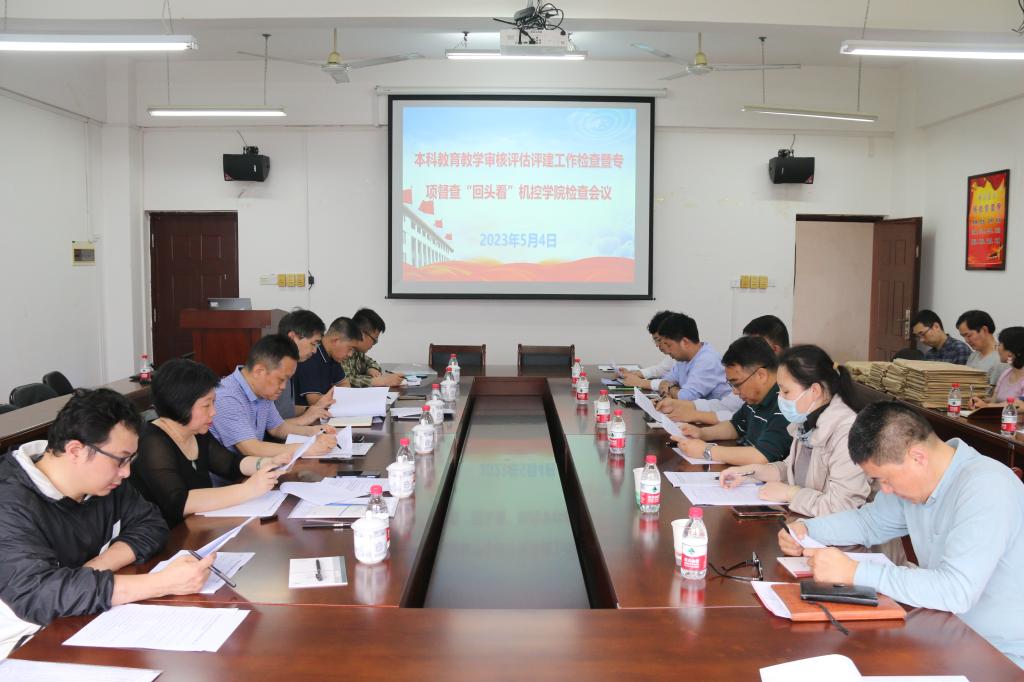2023年5月4日下午,学校总会计师曾繁荣在发展规划与教学质量监控中心副主任王俊,图书馆副馆长江晓云等相关人员陪同下到我院雁山校区07215会议室开展了本科教育教学审核评估评建工作检查暨专项督查“回头看”检查工作。学院党政领导班子,教研室、实验室负责人参加了此次会议。