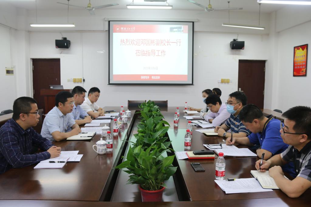 5月6日上午,学校副校长邓国彬在人事处副处长王盛、副处长冯良元、副处长邓炼等人的陪同下到我院检查指导工作。学院党政领导班子在雁山小区07215会议室进行了工作汇报。