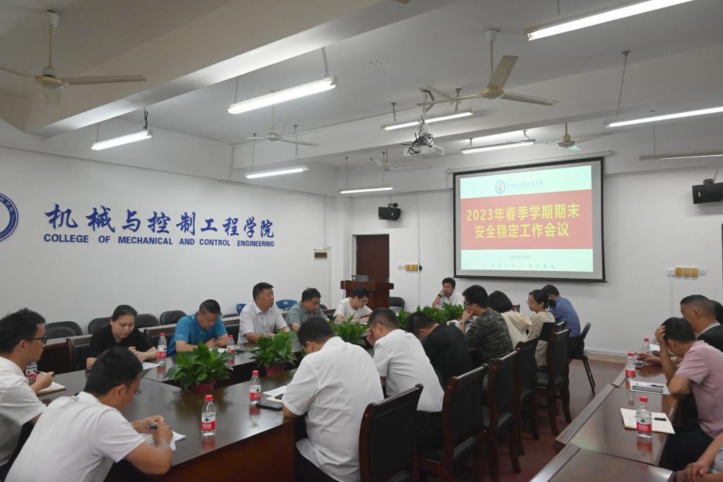 7月6日下午,学院在雁山校区07215会议室召开了2023年春季学期期末安全稳定工作会议,会议总结学院本学期安全稳定工作情况,分析当前安全问题工作形势,部署了期末和暑假安全稳定工作。学院全体领导班子、各科室负责人和全体辅导员参加了本次会议。