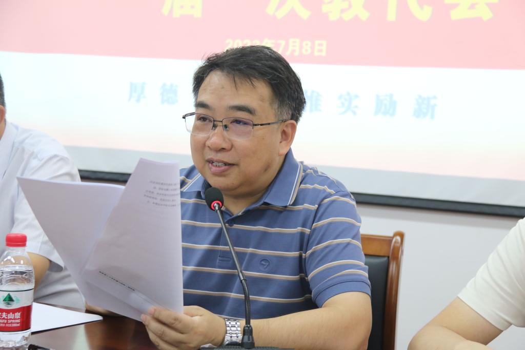 学院党委副书记王迎波宣读教代会会议决议