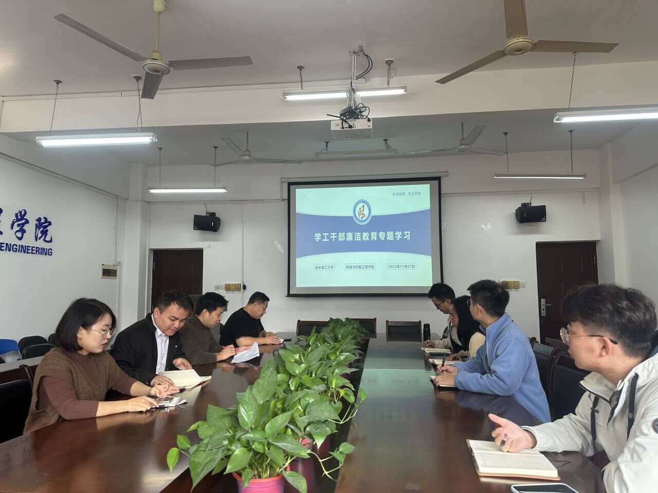 11月27日上午,机控学院学工办全体专兼职辅导员在07215会议室开展廉洁教育专题学习。本次专题学习由学院党委副书记、纪委书记王迎波主持。