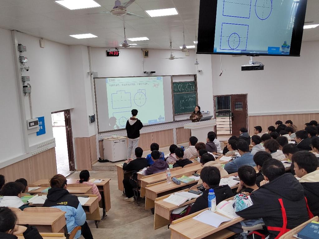 为进一步培养学生自主学习能力,提高教学效果,2023年12月4日在雁山07615多媒体教室,由学校教务处和机控学院联合组织部分教师对机械教研室雷军乐老师的“机械制图与计算机绘图”课程进行了混合式教学公开课观摩活动。