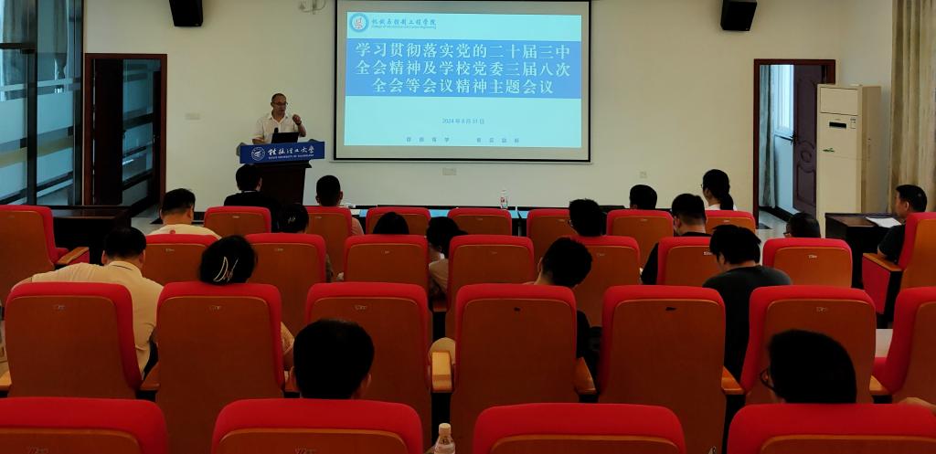 为深入学习贯彻党的二十届三中全会精神、习近平总书记关于教育的重要论述和习近平总书记关于广西工作论述的重要要求,认真贯彻落实学校党委三届七次、八次全会精神以及近期学校有关重要会议精神,加快推进学院高质量高水平高速度发展,推动高质量党建引领各项事业高速度发展取得新成效。学院于2024年8月31日下午在屏风校区教一楼副楼三楼协同创新中心报告厅召开了2024年秋季学期全院教职工大会。学院全体教职工参加了会议。会议由学院党委书记耿俊茂主持。