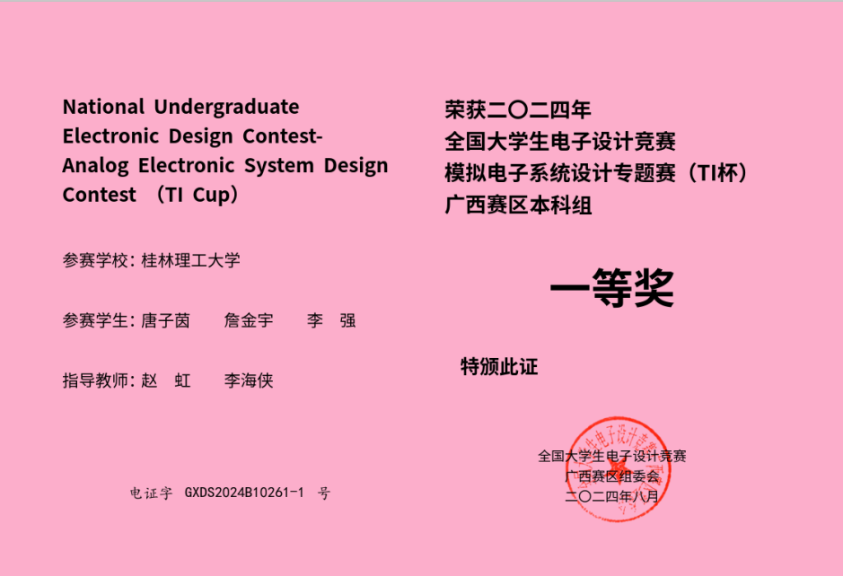 2024年12月8日机械与控制工程学院组织师生代表参加了在南宁召开的“TI杯”广西大学生电子设计竞赛作品展及颁奖会。今年我们有两队学生获得了广西区一等奖,桂林理工大学也获得了优秀组织奖。