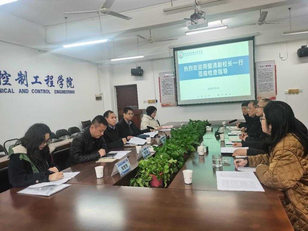 3月4日下午,学校副校长周国清在学校党办校办法务办、研究生院、本科生院等部门领导陪同下到我院检查指导新学期开学工作,深入课堂听课,并在雁山校区07215会议室召开了座谈会。我院全体党政领导班子成员,党政办、教研室和实验中心主任参加了会议。