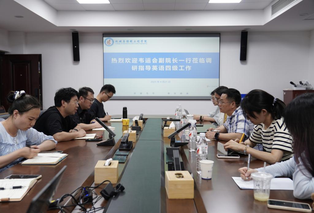 为进一步提升学生英语四级通过率,加强学院间交流合作,2025年4月21日,外语学院副院长韦运会带领教学团队骨干成员在我院07209会议室,就大学英语四级考试工作开展了深入调研与指导。学院党委副书记王迎波,各年级辅导员李业正、罗泽明、刘威、韦华泽参加了此次调研会议。