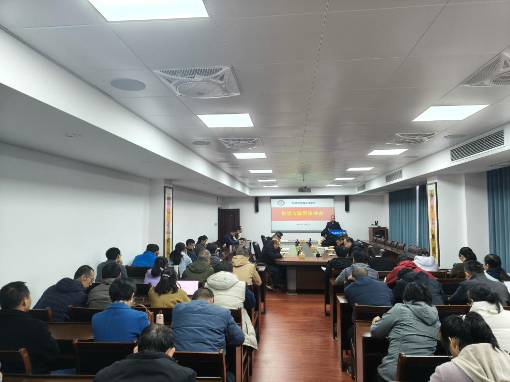 12月5日下午,学院在7209会议室召开形势与政策宣讲会。宣讲会由学院党委负责人主讲,全体教职工参加。