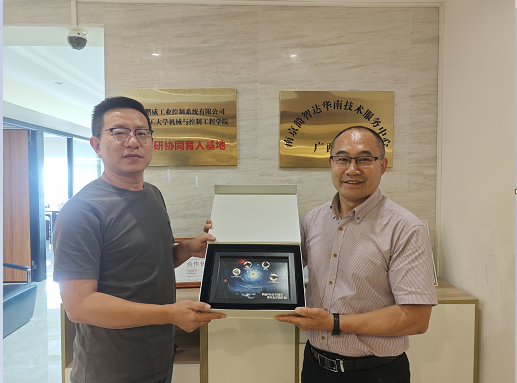 在广西鹏威工业控制系统有限公司,耿俊茂一行看望了2006届自动化专业校友邱鹏,他目前担任深圳市奥威尔控制技术有限公司和广西鹏威工业控制系统有限公司等公司法人代表,公司业务覆盖西南和东南地区。邱鹏校友深情回顾了自己在母校的学习经历,详细介绍了自己在自动化控制领域的工作经历与成果,并与大家探讨了如何更好地发挥企业与高校协同育人的积极作用。他表示,将一如既往关注学校发展,坚定支持学校发展大计,为学校高质量发展贡献自己的力量。耿俊茂对邱鹏校友的情怀和成绩给予高度评价,并期待他未来能与母校在人才培养、科学研究等方面开展更多合作。