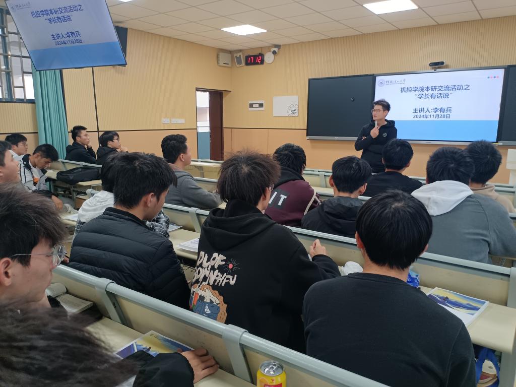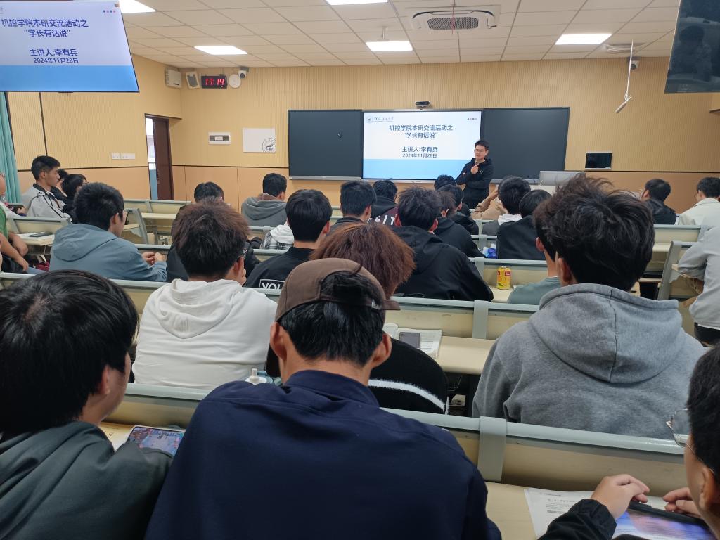 为了加强学院研究生与本科生之间的交流,20241128日,我院在6514教室开展了机控学院本研交流活动之学长有话说”为主题的活动,旨在搭建本科生与研究生之间的交流平台,促进学术与经验的传承,增强学院内部的凝聚力。活动由研三学长李有兵担任主讲人,大一机械专业本科生参加。