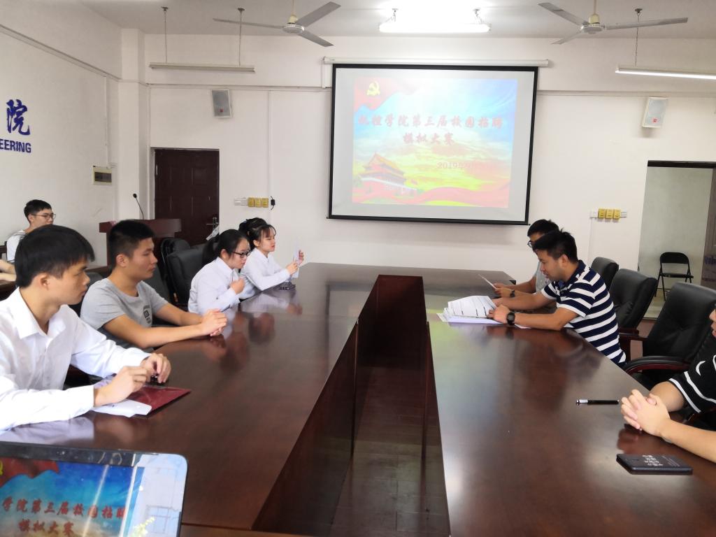 2019年9月30日,我院在雁山07215室开展学院第三届校园模拟招聘大赛决赛,担任本次大赛面试官的是学院党委副书记王迎波老师、辅导员刘金良、张敏老师。