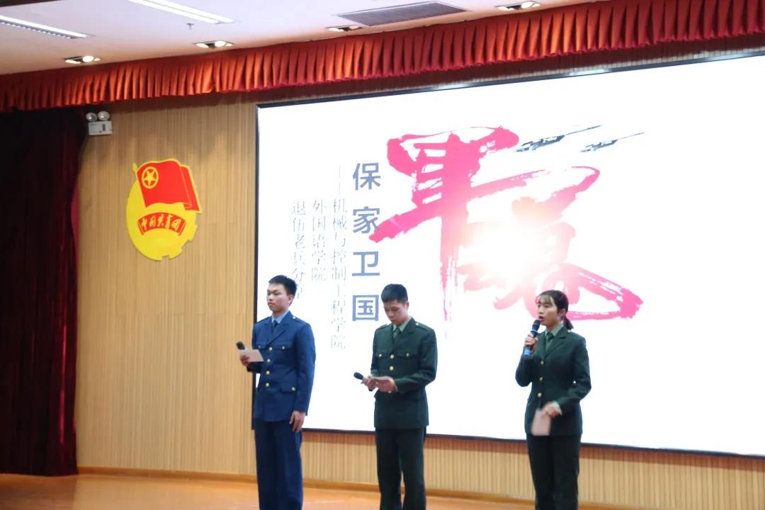 退伍老兵黄慧仙、张杰贵和潘泽宇上台为大家分享军旅故事。在部队的训练虽艰苦却充实,他们朴实的言语中展现出成为中国军人的骄傲与自豪,感染了在场的同学,让同